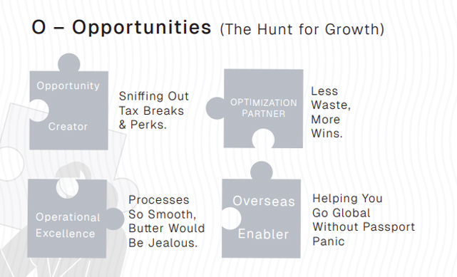 Opportunities are where Wolf Global turns market changes into client advantage. As regulations tighten, reporting expectations increase, and businesses expand across states/countries, clients need reliable finance ops without increasing fixed headcount. We help them capture opportunities like outsourcing efficiency, process automation, better MIS, and compliance-led credibility with banks, investors, vendors, and customers. Whether it's expansion, fundraising readiness, cost optimization, or improving working capital cycles-Wolf Global helps clients *spot the opportunity early, execute cleanly, and sustain it with systems* rather than ad-hoc effort.